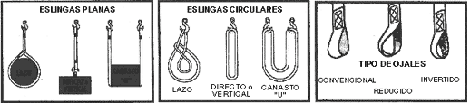 distintos tipos de eslingas confeccionadas en fibras sintéticas,